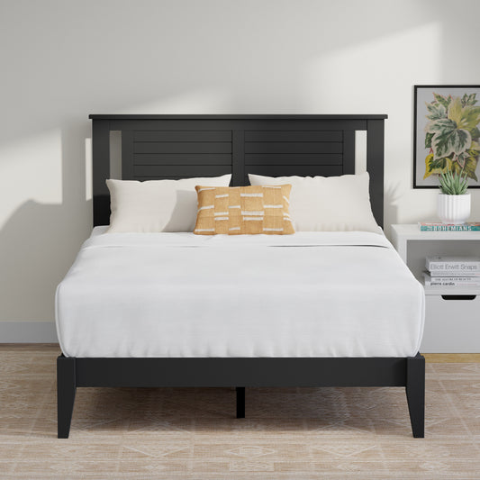 ComfIQ Serene Solid Wood Modern Farmhouse Platform Bed with Horizontal Scoring Headboard